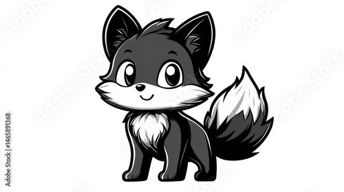 © Almahyra, Obraz premium Cute cartoon fox, standing, isolated background, children's book illustration