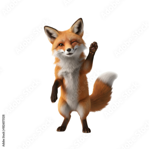 © Gustav, Obraz premium Cute cartoon fox waving hello and winking against a black background