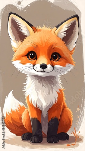 © Lek, Obraz premium Cute cartoon fox with bright orange fur and big, expressive eyes