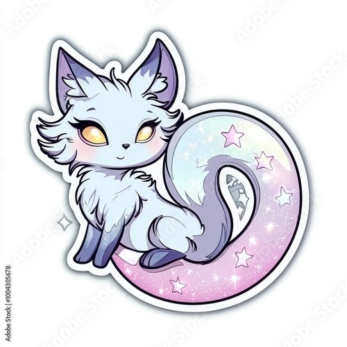 © Tungbackground, Naklejka premium Cute Cartoon Fox with Starry Tail