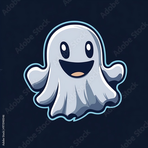 Obraz premium Cute cartoon friendly ghost illustration on dark background