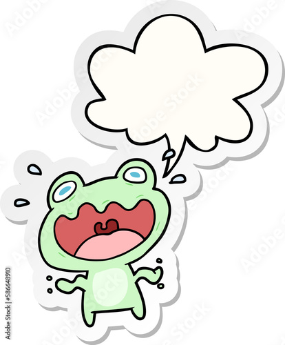 Fototapeta premium cute cartoon frog frightened and speech bubble sticker