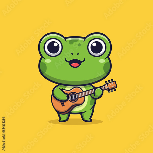Fototapeta premium Cute Cartoon Frog Playing Guitar.