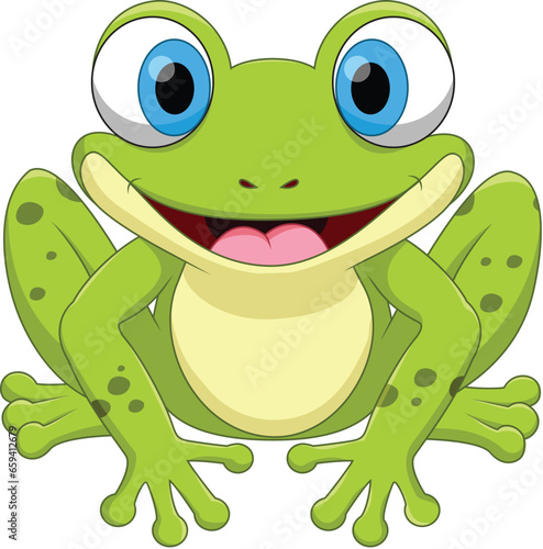 © Ganjar, Obraz premium Cute cartoon frog smiles happily