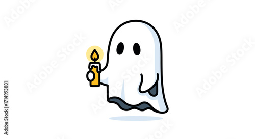 Fototapeta premium Cute Cartoon Ghost Character Holding a Lit Candle.