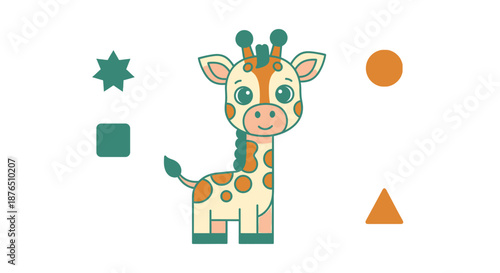 © Hridoy, Fototapeta premium Cute Cartoon Giraffe with Stars and Moon on Dark Background for Kids Design