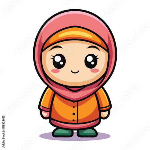 © setan cell, Obraz premium Cute cartoon girl in hijab (1)