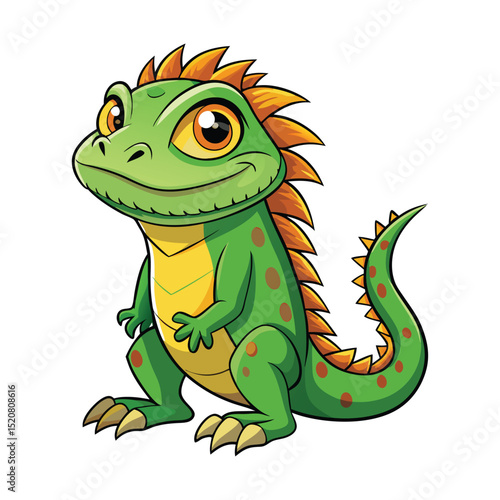 Obraz premium Cute cartoon green iguana reptile illustration