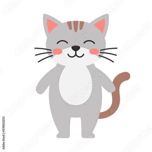 Obraz premium Cute cartoon grey tabby cat with closed eyes isolated on transparent background