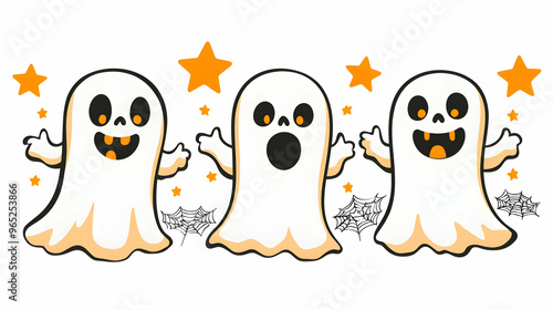 Obraz premium Cute Cartoon Halloween Ghosts with Stars and Spider Webs