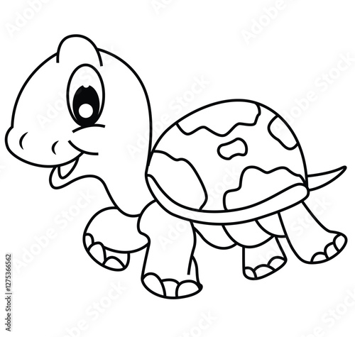 © Ravinder, Fototapeta premium Cute cartoon hand drawn vector happy turtle coloring page.