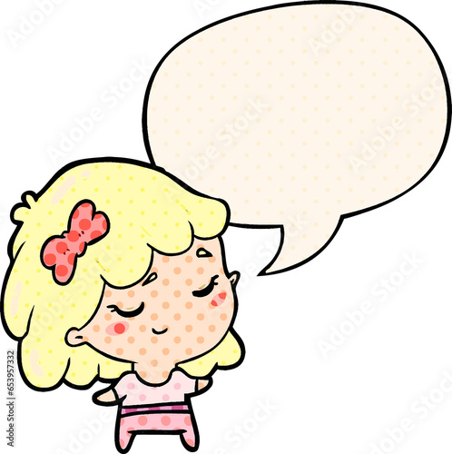 Obraz premium cute cartoon happy girl with speech bubble in comic book style