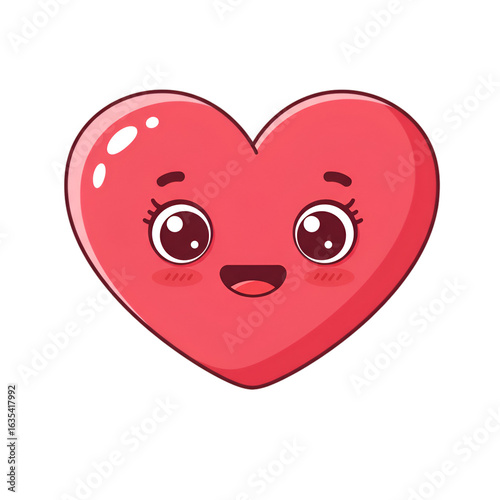 © Ellene, Obraz premium Cute Cartoon Heart Illustration with Pink Blush and Smiling Face