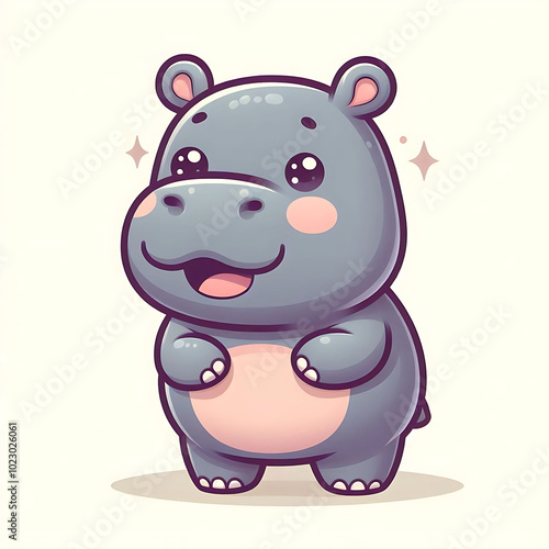 Fototapeta premium Cute Cartoon Hippo Character with Cheerful Expression