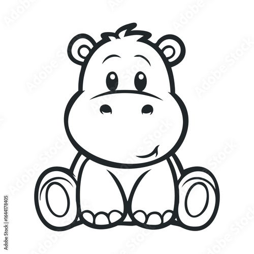 © Mr. Png, Fototapeta premium Cute cartoon hippo drawing in black and white line art