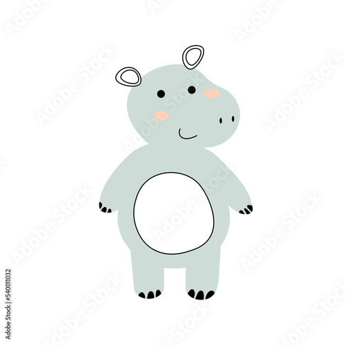 Fototapeta premium Cute cartoon hippo. Hippo on a white background. Vector illustration for design and print. EPS