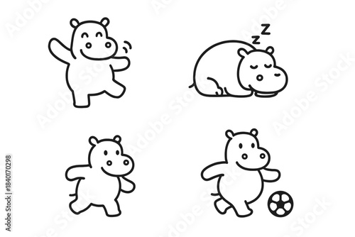© icon_art, Obraz premium Cute cartoon hippopotamus character set showing different poses and activities