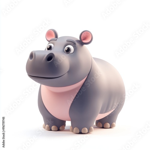 © BerkahStock, Naklejka premium Cute Cartoon Hippopotamus 3D Render