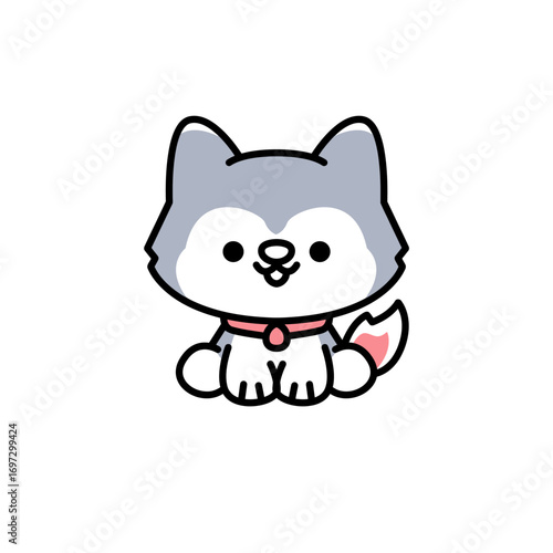 Obraz premium Cute Cartoon Husky Dog Vector Illustration with Necklace