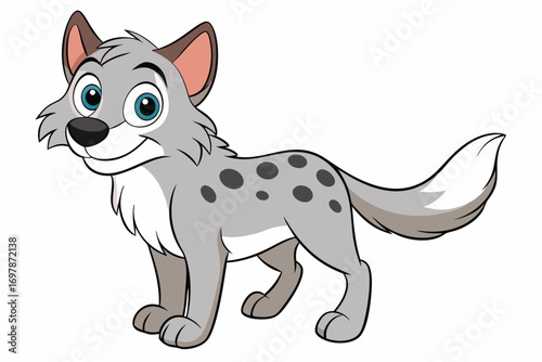 Obraz premium Cute Cartoon Hyena with Spotted Fur on White Background