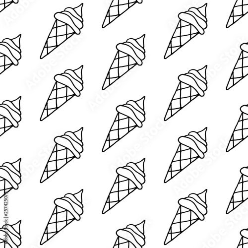 © penarulit, Fototapeta premium Cute cartoon ice cream pattern with hand drawn ice cream. Sweet vector black and white ice cream pattern. Seamless monochrome doodle ice cream pattern for fabric, wallpapers, wrapping paper and web.