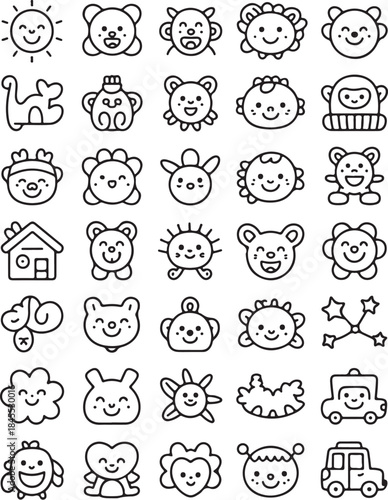 © DesignRacing, Naklejka premium Cute cartoon icons for kids and children's projects