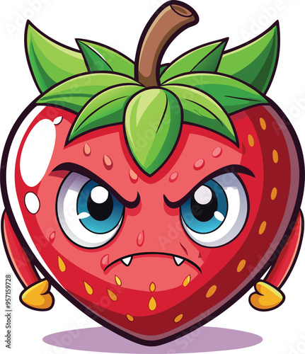 Fototapeta premium Cute Cartoon isolated Strawberry | with a sunglass & Christmas hat and siting...