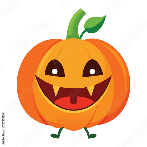 Fototapeta premium Cute cartoon jack o lantern with a big smile and fangs