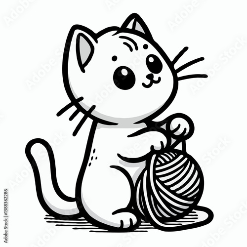 Fototapeta premium Cute cartoon kitten playing with yarn ball vector