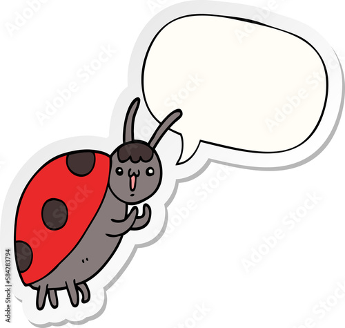 Obraz premium cute cartoon ladybug and speech bubble sticker