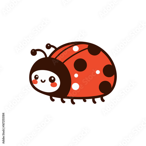 © Rtxyoi, Obraz premium Cute cartoon ladybug character with a smiling face on a plain white background