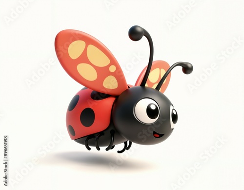 © Siwapong, Fototapeta premium Cute Cartoon Ladybug with Big Eyes Flying isolate on white background