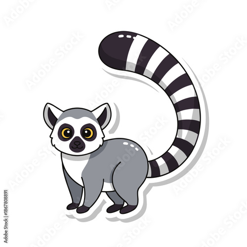 © Haruka, Fototapeta premium Cute Cartoon Lemur Sticker with Striped Tail.