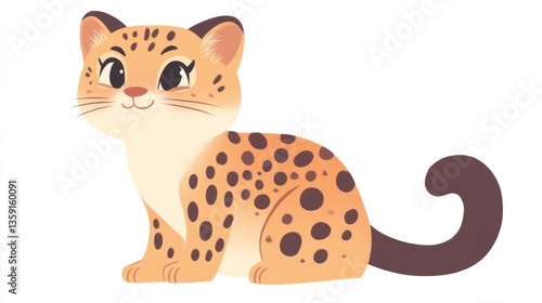 © Falfa, Fototapeta premium Cute cartoon leopard cub, sitting, profile view, for kids' book illustrations