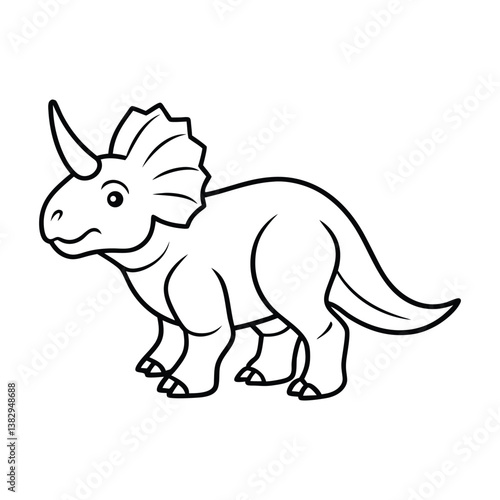 © Mofajjol, Fototapeta premium Cute Cartoon Line Drawing of a Triceratops Dinosaur for Coloring Activities