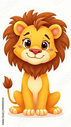 Obraz premium Cute Cartoon Lion Character Illustration Featuring a Friendly and Playful...