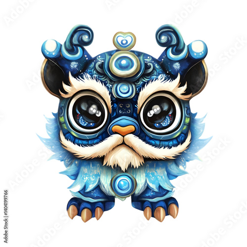 © Da, Fototapeta premium Cute Cartoon Lion Illustration in Blue with Detailed Ornamentation on Transparent Background