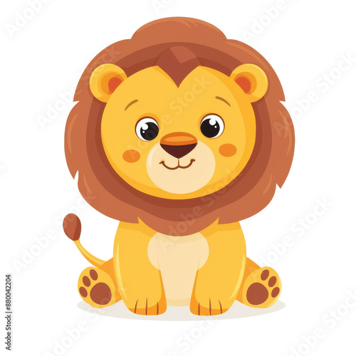 Obraz premium Cute cartoon lion with a big mane, perfect for children's books, educational...