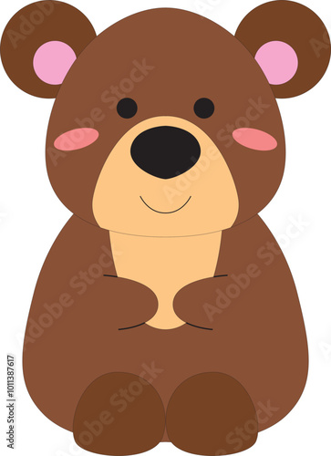 © Natalia Kononova, Obraz premium cute cartoon little brown happy bear, paws, stock vector, white background