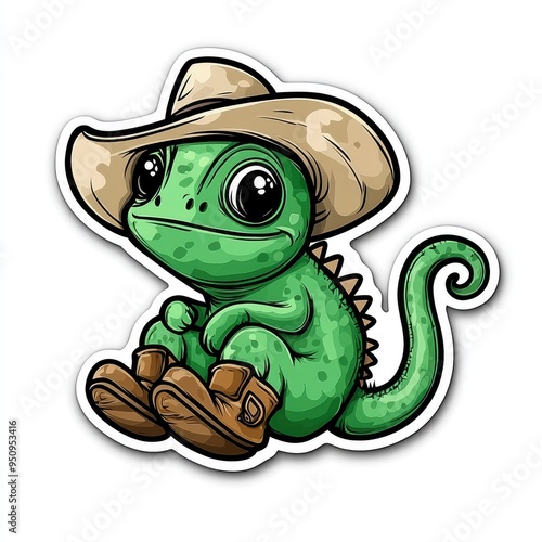 © Tung's companion, Fototapeta premium Cute Cartoon Lizard Wearing a Cowboy Hat and Boots