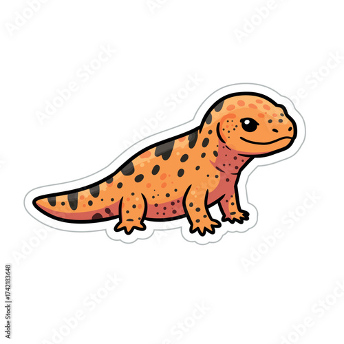 © Dira, Fototapeta premium Cute cartoon lizard with orange and black spots on white background.