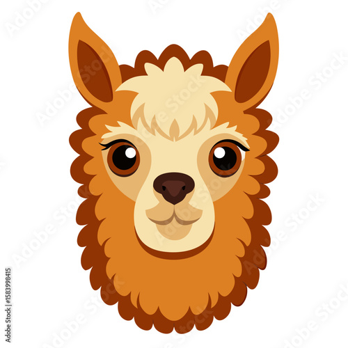 Obraz premium Cute cartoon llama face with big eyes and fluffy brown fur