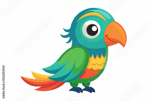 Obraz premium Cute cartoon lynx character with big green eyes and fluffy tail, illustrated in a vibrant and friendly style. Perfect for children's books, educational materials.