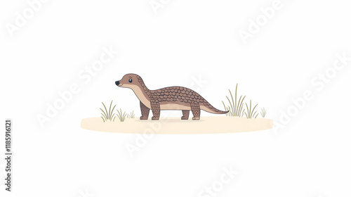Obraz premium Cute, cartoon meerkat, walking in desert, simple background.