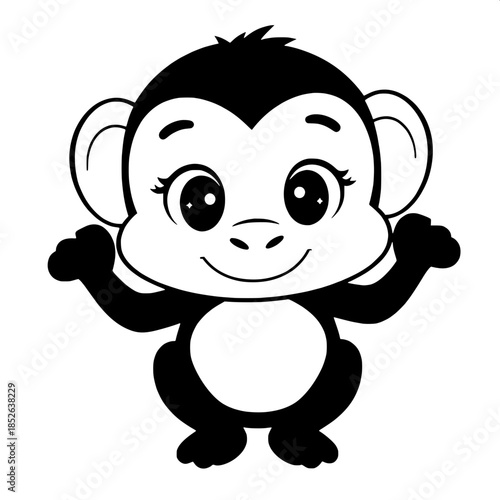 Fototapeta premium Cute cartoon monkey illustration featuring solid black shapes and clean...
