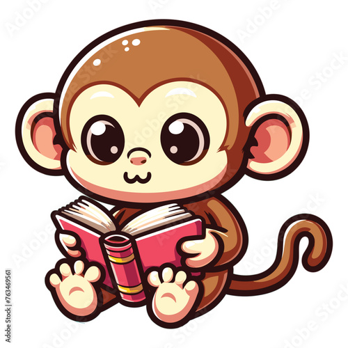 Obraz premium Cute Cartoon Monkey reading a book vector illustration