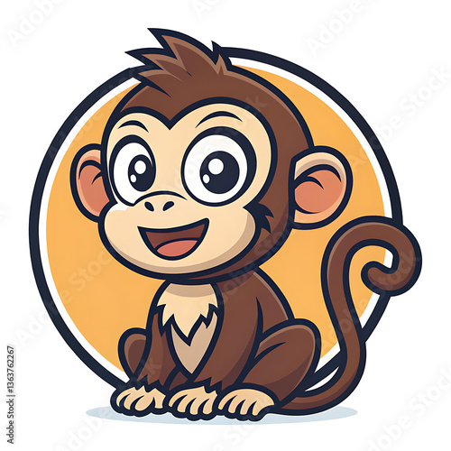 Fototapeta premium Cute Cartoon Monkey Sitting with Happy Expression in Vector Illustration