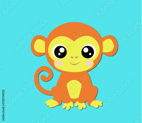 © Amna, Obraz premium Cute Cartoon Monkey Vector Illustration on Blue Background