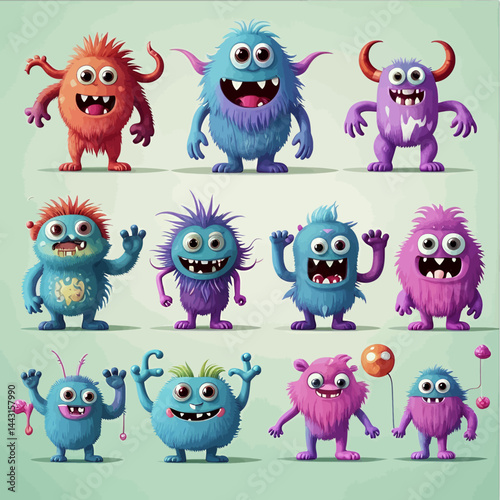 Obraz premium Cute_Cartoon_Monster_Characters_Adorable_Furry_Creatures_for_Kids_Books_and_Games_Vibrant_Colors_Playful_Designs_Funny_Illustrations_Monster_Party