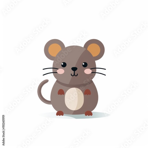 Fototapeta premium Cute Cartoon Mouse with Round Ears and a Plump Body, Standing on Its Hind...